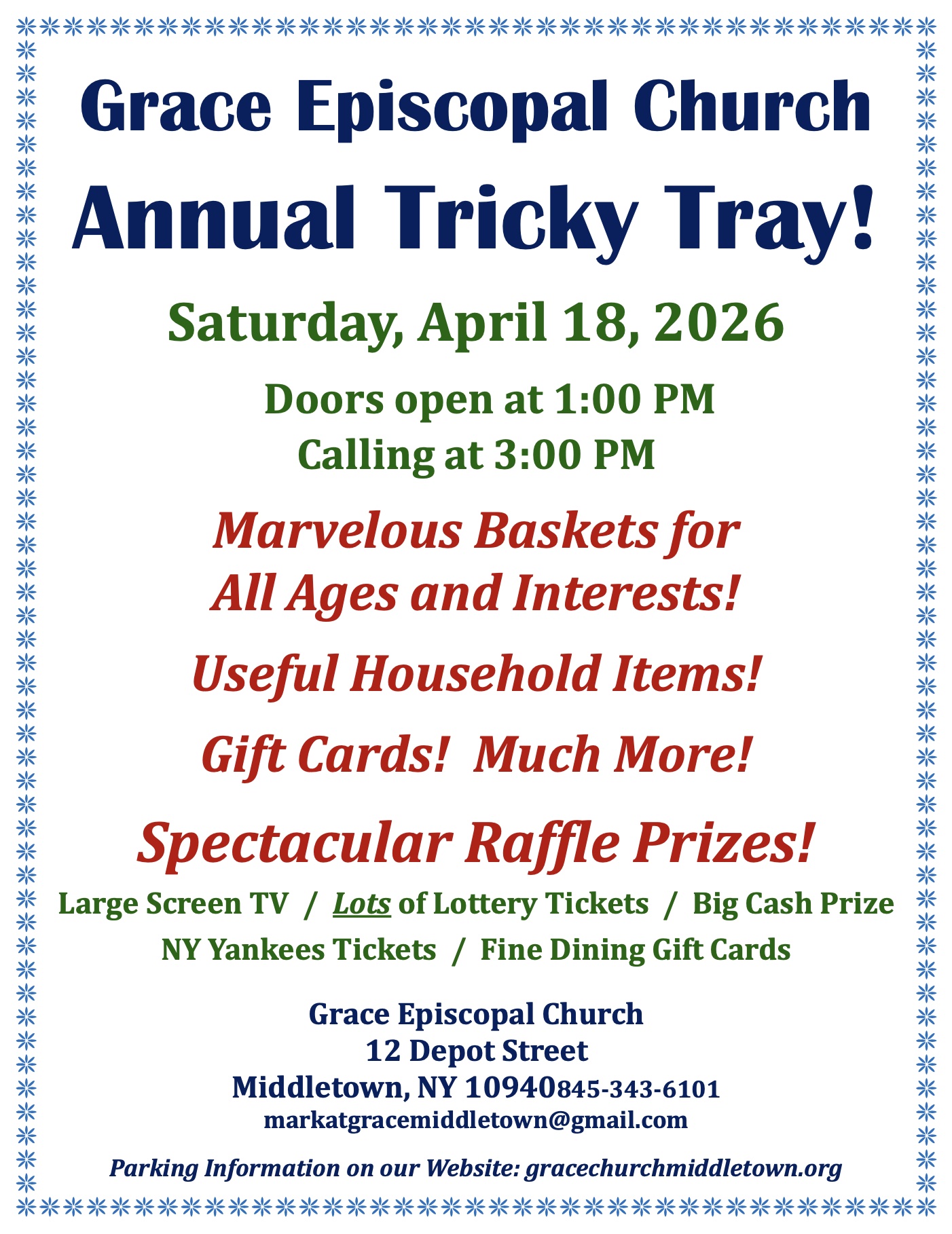 Grace Episcopal Church is located on North St. just south of Depot St. in vibrant and picturesque Middletown, NY. Parking is available nearby.
